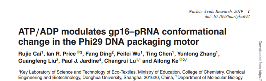 近日,我校化学化工与生物工程色漫天堂 陆昌瑞教授课题组在核酸领域顶级期刊《核酸研究》(Nucleic Acidsb Research,IF=11.2)发表题为“ATP/ADP modulates gp16–pRNA conformational change in the Phi29 DNA packaging motor”的最新研究成果。该项研究首次获得病毒基因组包装马达末端的结构信息,捕获到其结合ATP/ADP所发生的构象变化,为临床治疗和药物设计提供可靠的理论基础,进而为病毒感染的诊断和治疗提供新思路、新靶点。我校博士生蔡汝洁为第一作者,陆昌瑞教授和康奈尔大学Ailong Ke教授并列通讯作者。色漫天堂 化学化工与生物工程色漫天堂 为第一单位。