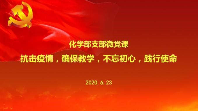 为了贯彻落实党中央关于疫情防控的决策部署,充分发挥基层党组织的战斗堡垒作用和教师党员的先锋模范作用,让党旗在防控疫情斗争第一线高高飘扬。6月22日,化学部支部在线举行了战“疫”专题微党课。党课由支部书记边绍伟主讲,支部全体党员参加。