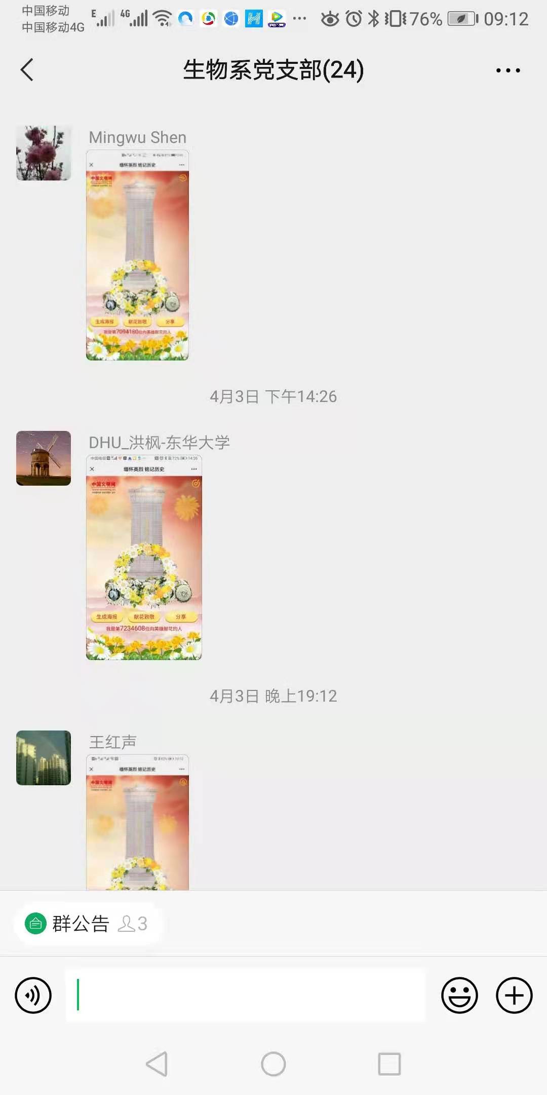 生物系党支部“网上祭英烈”活动